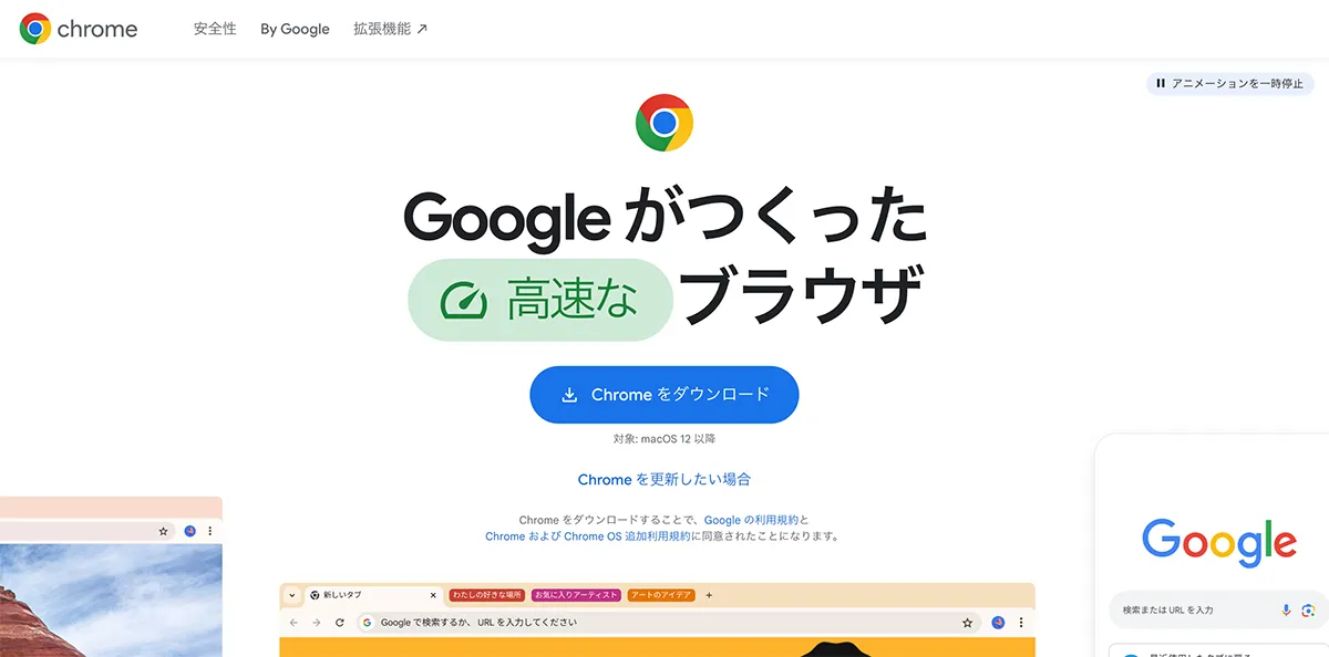 Chromeをインストールしていない場合は、以下の公式サイトからダウンロードしてください。