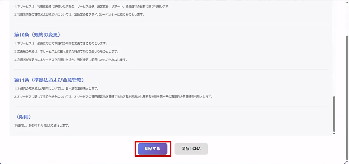表示された利用規約を確認してください。